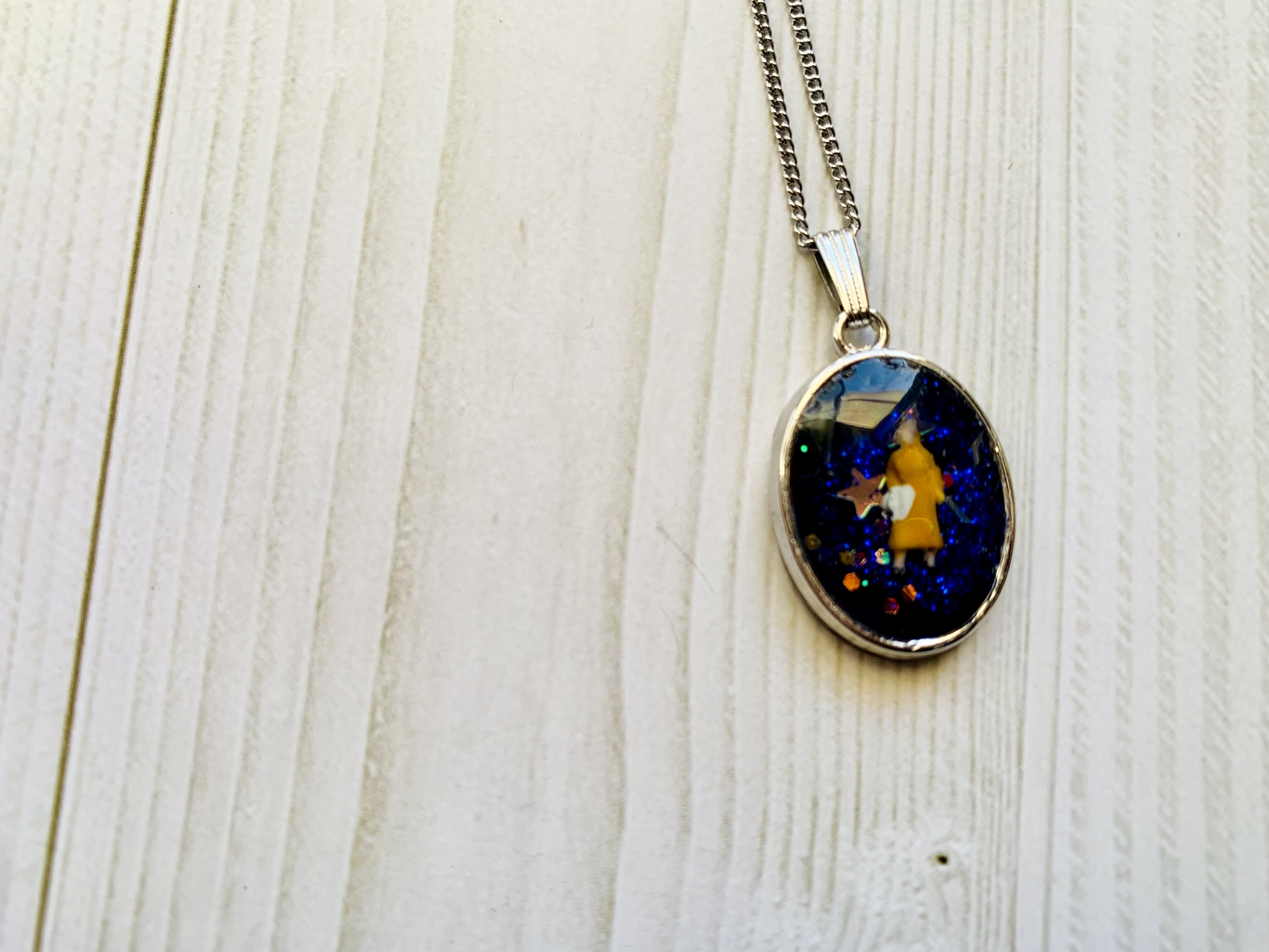 ミニチュアの女性と星空のネックレスです。